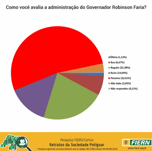 Pesquisa CERTUS/FIERN: a gestão de Robinson Faria é péssima para 52,91% da população do RN